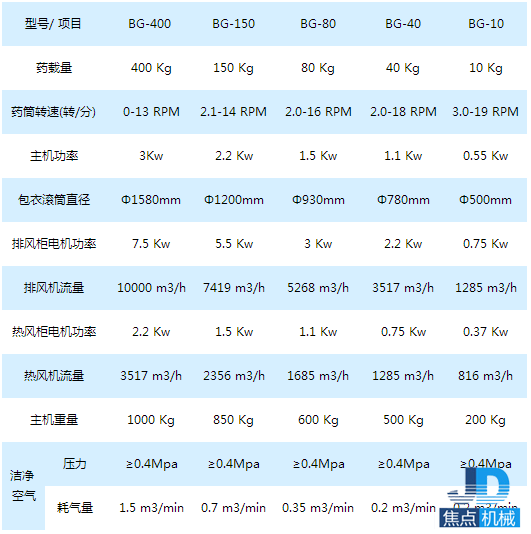 a、包衣鍋體 有孔或無(wú)孔、容量、材質(zhì)、拋光情況、正反方螺旋導(dǎo)流方式、配片劑在線溫度控制