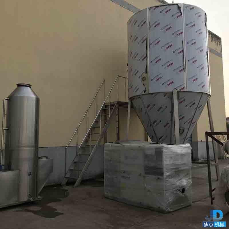 ①塔內(nèi)采用氣掃清粉系統(tǒng),防止物料干粉長(zhǎng)時(shí)間粘壁現(xiàn)象,使物料被快速回收。(如遇含糖量高的物料,容易粘壁,本公司可設(shè)計(jì)成夾套風(fēng)冷式,防止粘壁)